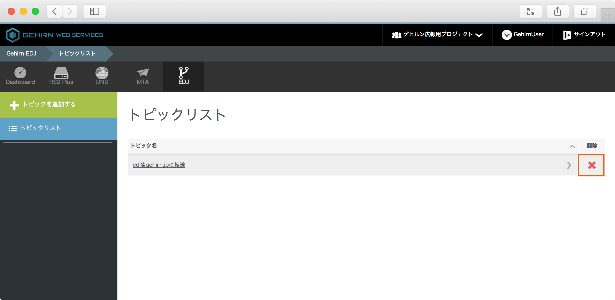 ここでは EDJ からトピックを削除する手順について解説します。