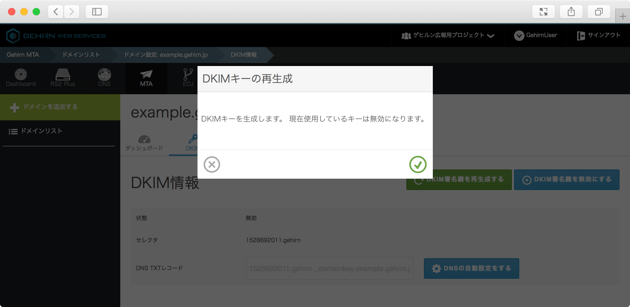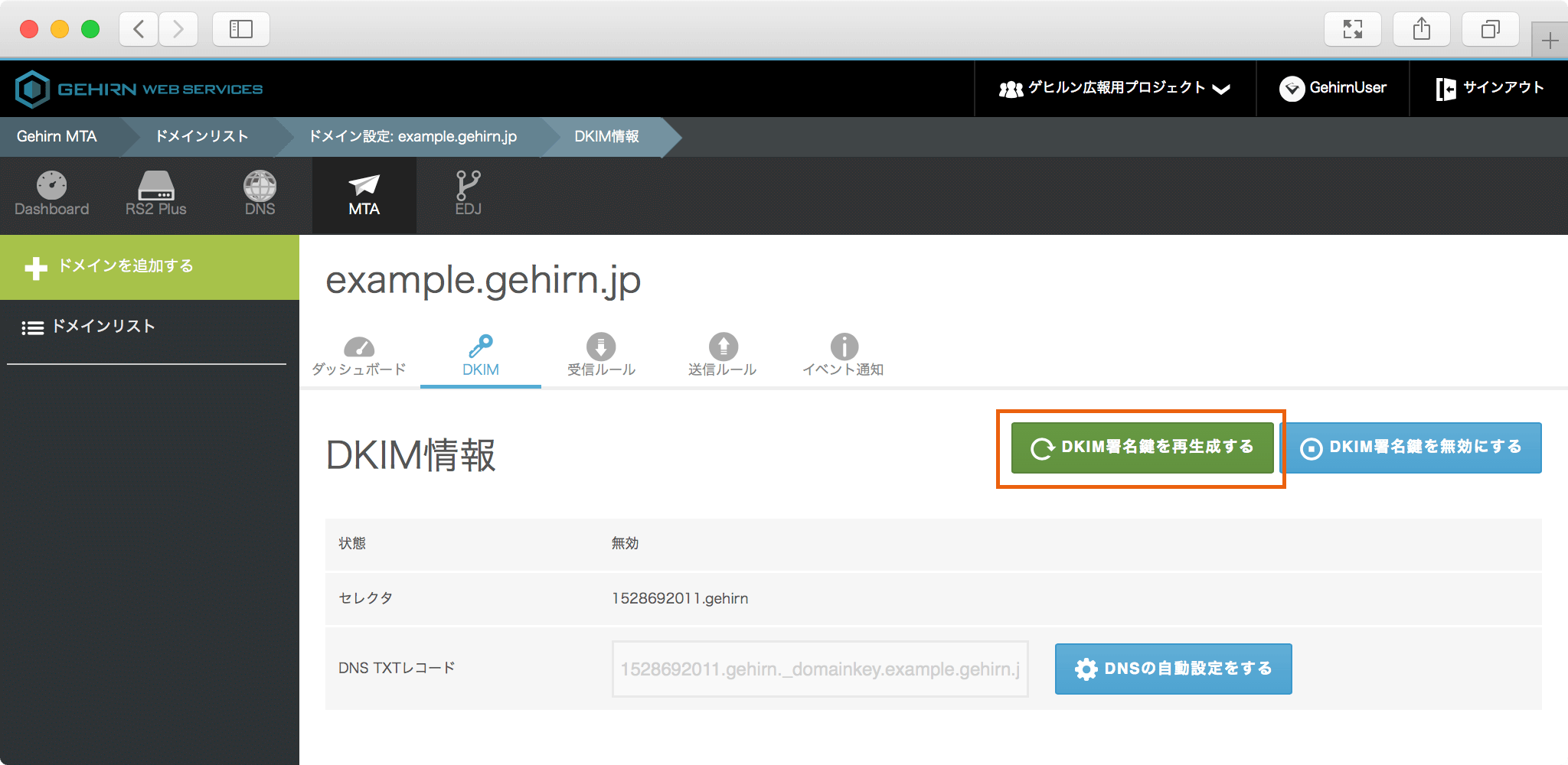 ここでは、MTA のドメインに対して DKIM 署名鍵を再生成する手順について解説します。