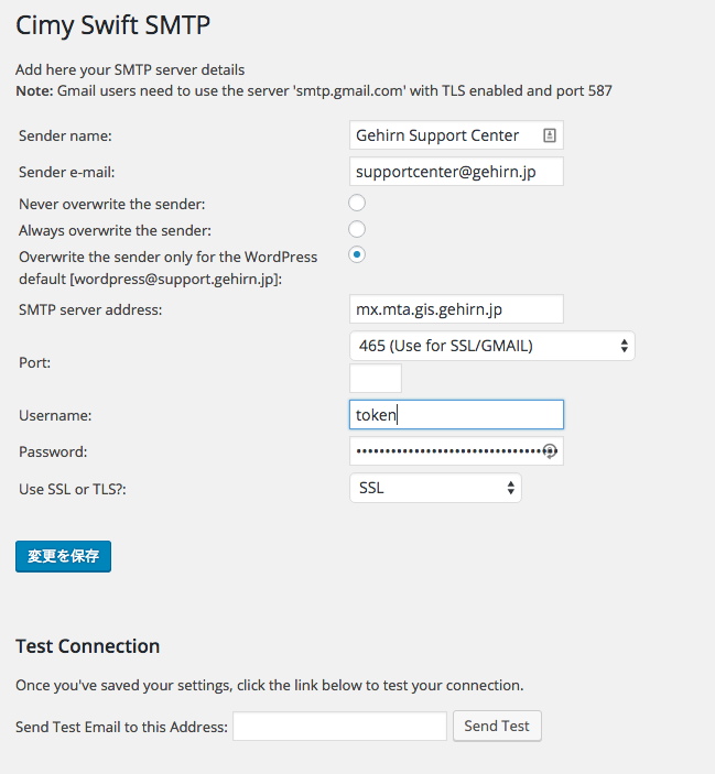 「Test Connection」からメールの送信をテストしてください。