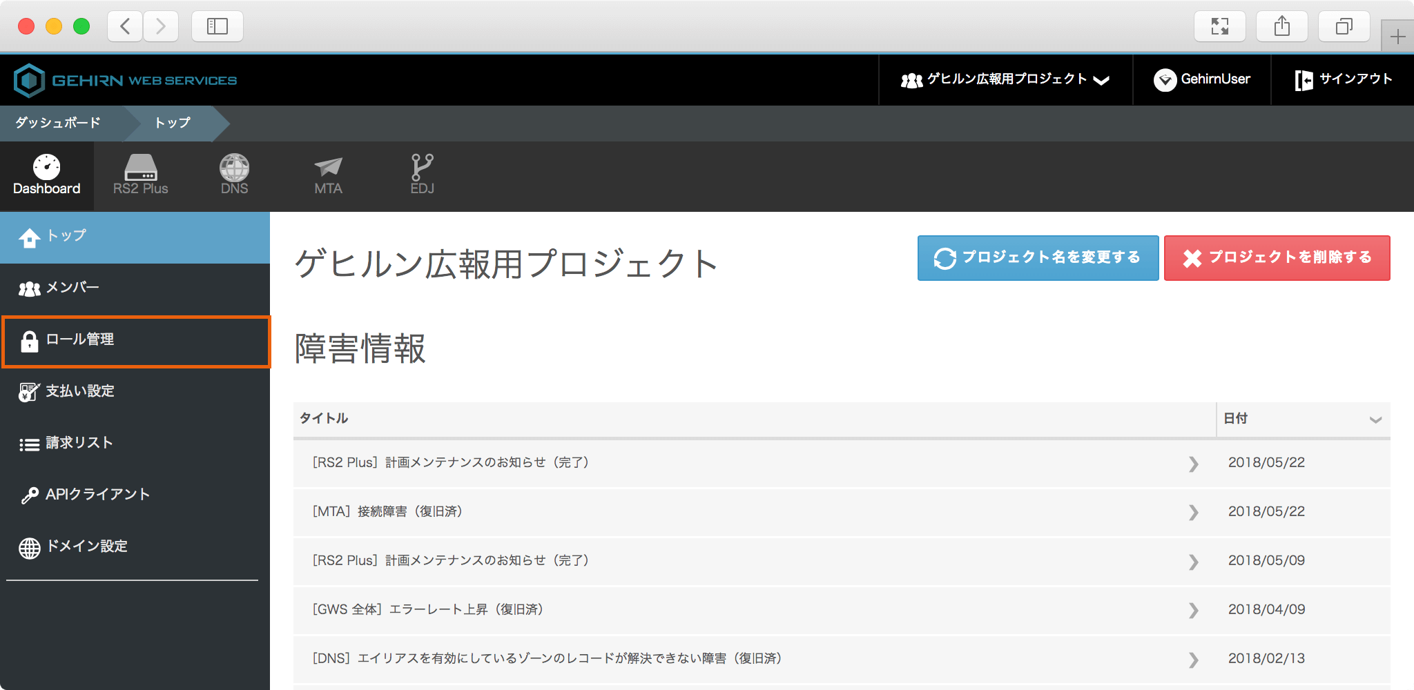 ダッシュボードからロール管理を選択し、ロール管理ページへ移動します。