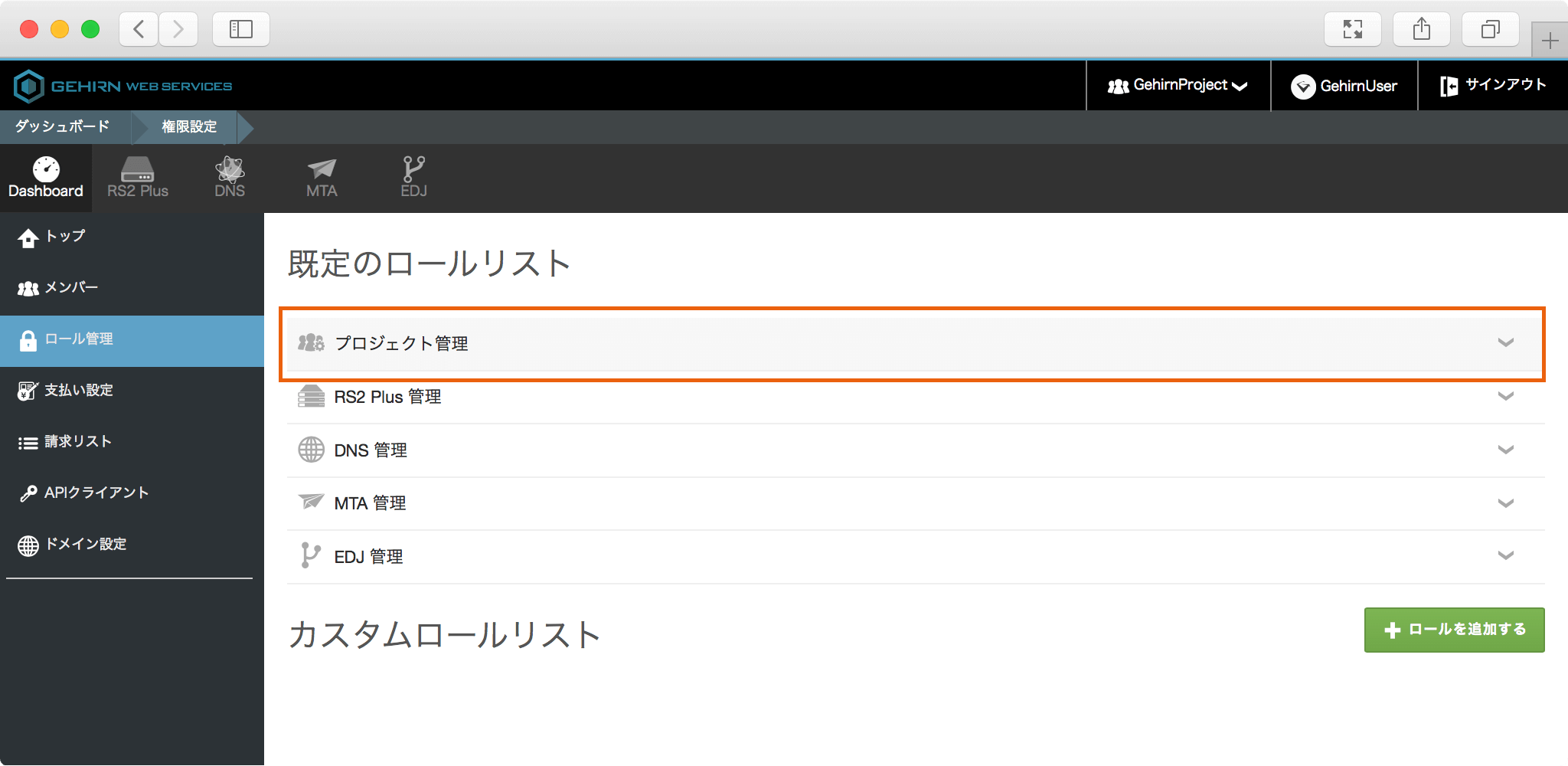ダッシュボードからロール管理を選択し、ロール管理ページへ移動します。
