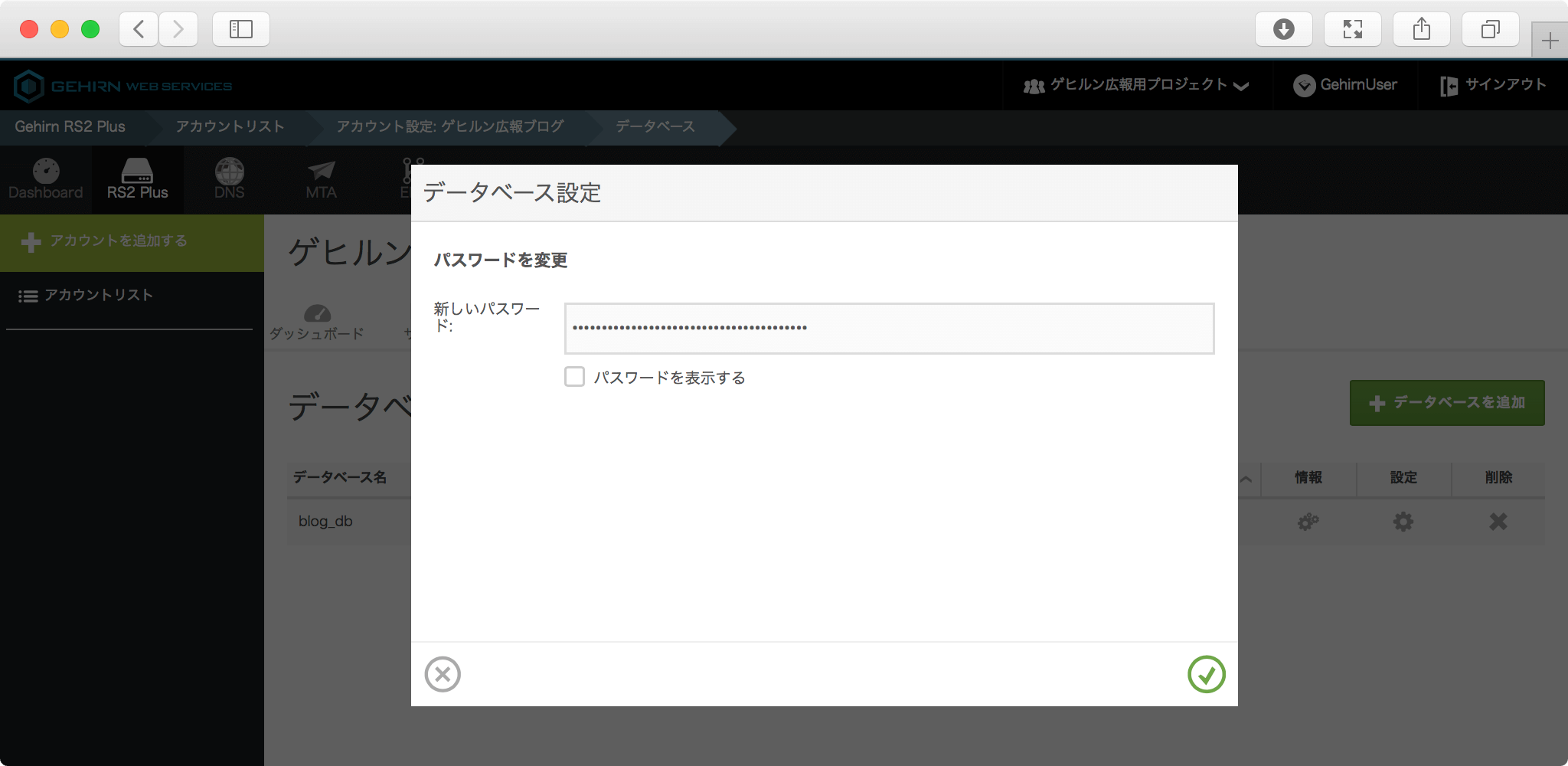 データベースのパスワードを変更する