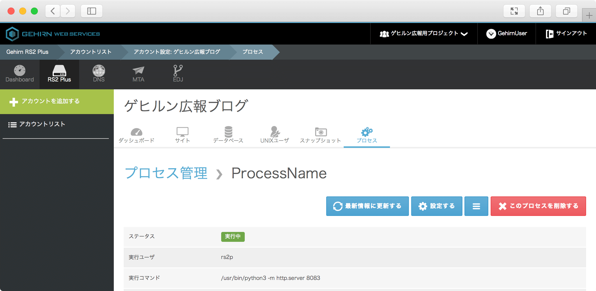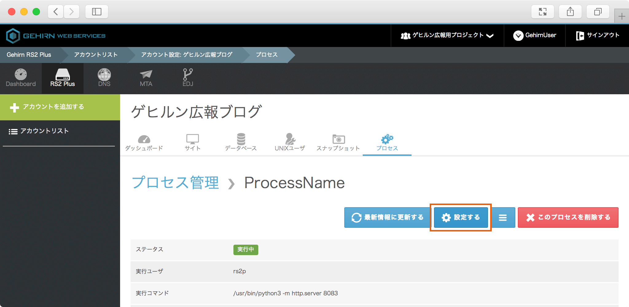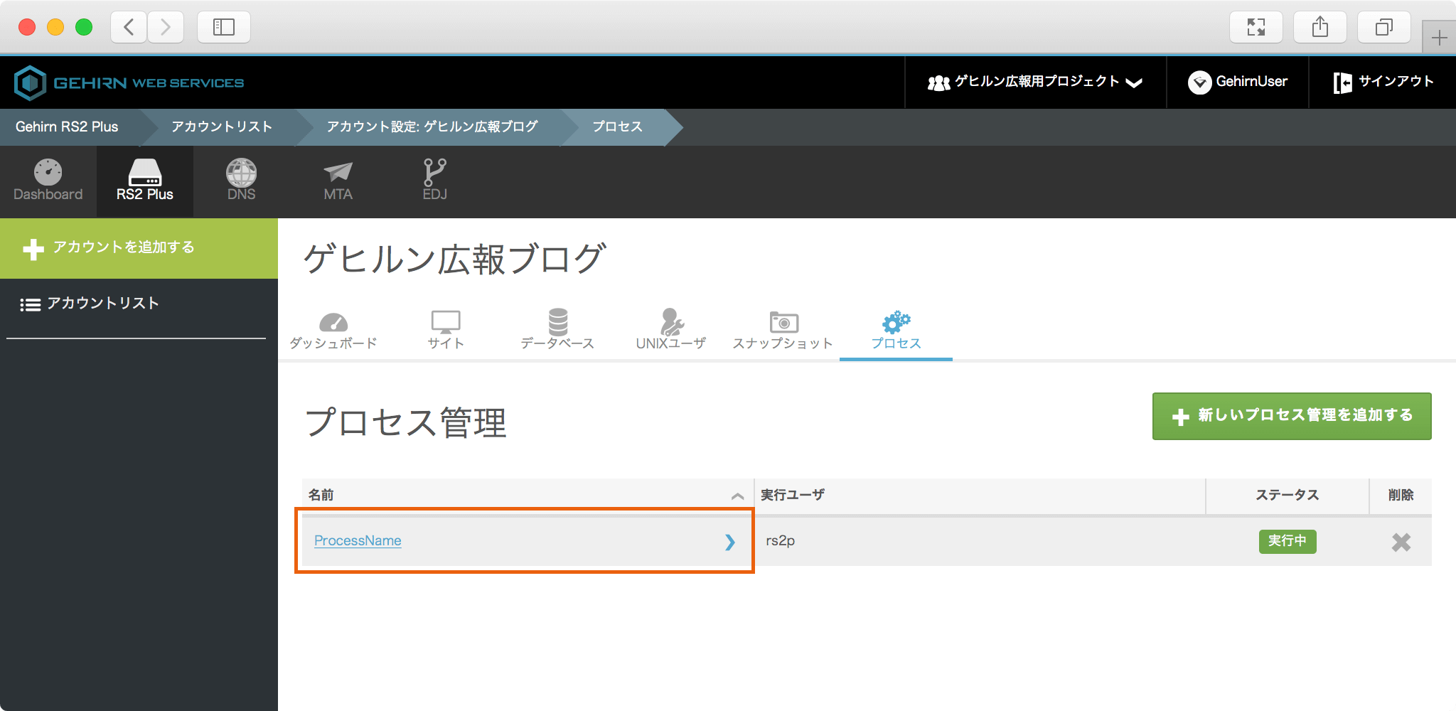対象のアカウントのプロセスタブを開く ¶
